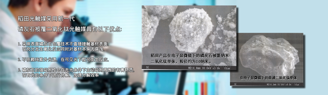 在認識【光觸媒】之前,要先了解什么是【觸媒】。觸媒是日語,翻譯成中文叫催化劑。催化劑是能在化學反應中加速反應速率,而本身在反應前后并不發生變化的物質。光觸媒是一種以納米級二氧化鈦為代表的具有光催化功能的光半導體材料的總稱。它涂布于基材表面,在光線的作用下,產生強烈催化降解功能:能有效地降解空氣中有毒有害氣體;能有效殺滅多種細菌,并能將細菌或真菌釋放出的毒素分解及無害化處理;同時還具備除臭、抗污、凈化空氣等功能。 稻田光觸媒采用【磷灰石被覆納米二氧化鈦分子結構】,具有吸附、分解、去除、無毒化的特質。表面磷灰石包覆技術不直接接觸基材表面,在充分發生氧化反應的同時對基材本身無腐蝕。其中的【磷灰石】成分,具有強大的吸附能力,可以隨時吸附空氣中的異味源、細菌、病毒等有害物質,再交由【二氧化鈦】在光源下進行分解反應,因此能夠24小時吸附、分解